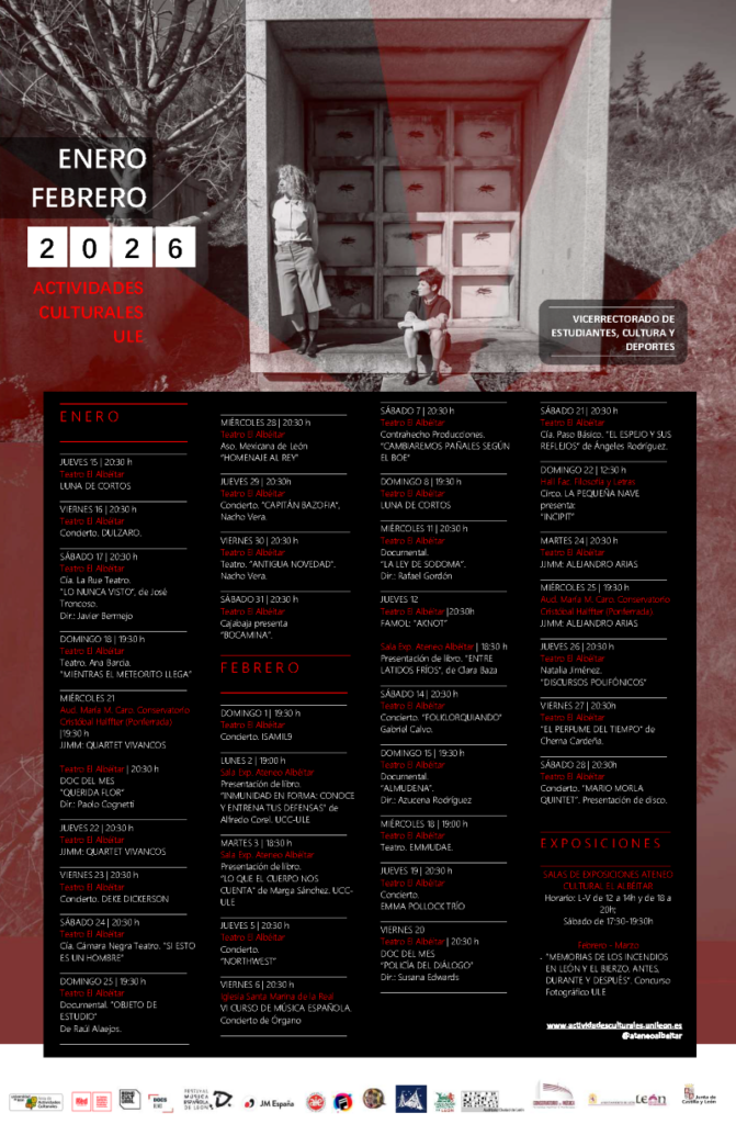 Prepara tu calendario porque el Teatro El Albéitar de la ULE tiene una programación intensa de danza, música, teatro y cine. ¡No te quedes sin tu entrada!